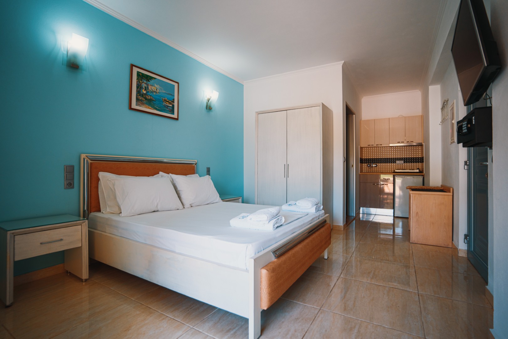 • Flat screen TV and satellite channels