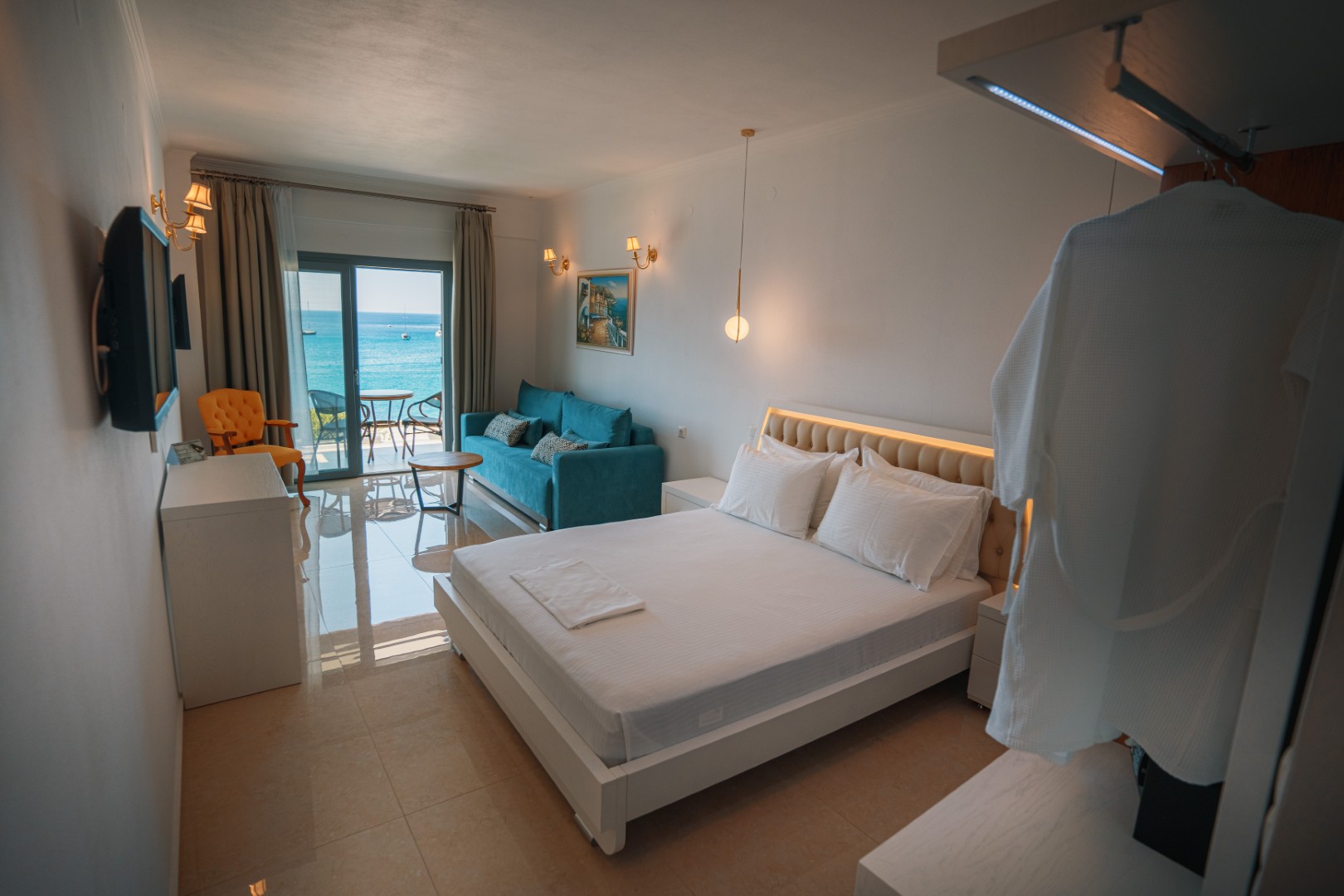 The Ionion Beach Apartments is situated over the beach Valtos in Parga, Greece. It is one of the most exceptional apartment complexes, because of the seductive view of Valtos Beach with the crystal waters and also the commanding view of Parga’s Castle where transfers you over the medieval. The uniqueness of the Ionion Beach Apartments in Parga, comes from the harmonious combination of luxury and simplicity of a place that blends with the outstanding sea view and the privileged location.
