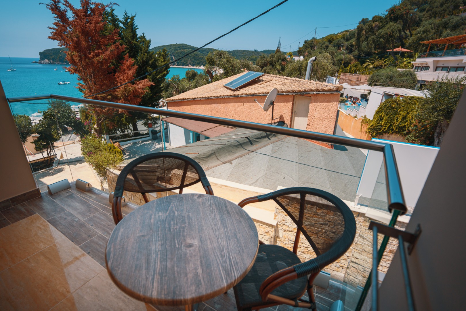 • Private terrace overlooking the beach of Valtos